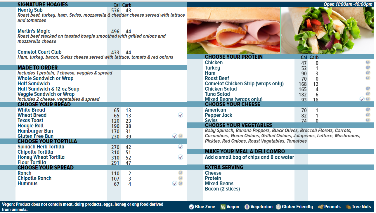 The food court is open daily from 6:00 a.m. to midnight. Individual kiosk hours vary so we've included them for your convenience:
