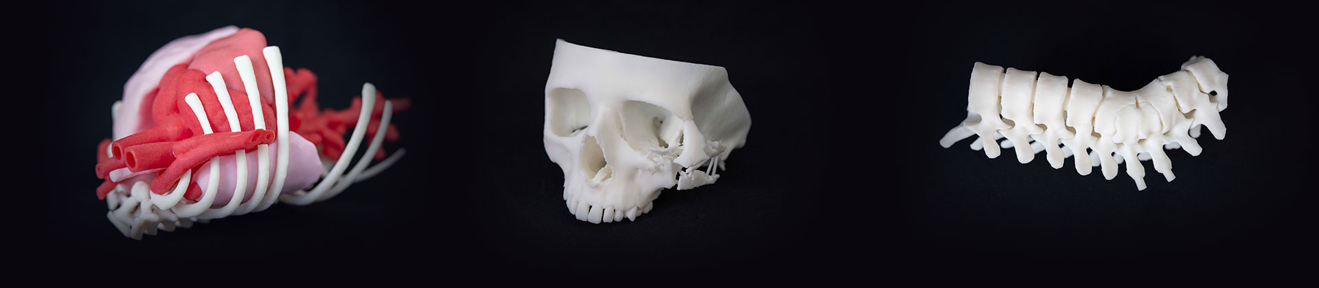 - Printing the physical model: Once the surgeon approves the 3D computer model, we print the first physical model. We may make extra models with different colors to highlight specific features. At times, we may turn to an even more specialized printer. It makes models that feel like they're actually made of bone or tissue, taking lifelike to a new level.