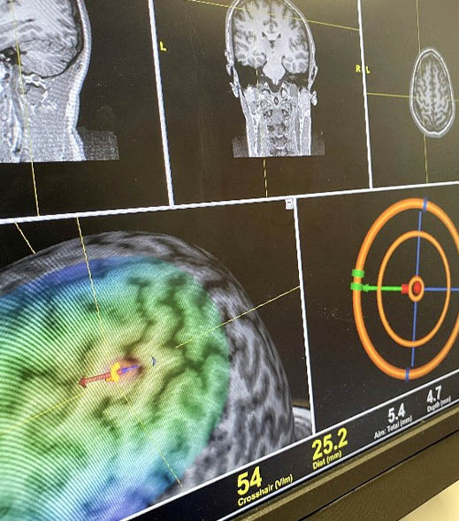 - TMS, or transcranial magnetic stimulation, which passes a very small magnetic field into the brain from outside the head to map the pathway of nerves in the brain