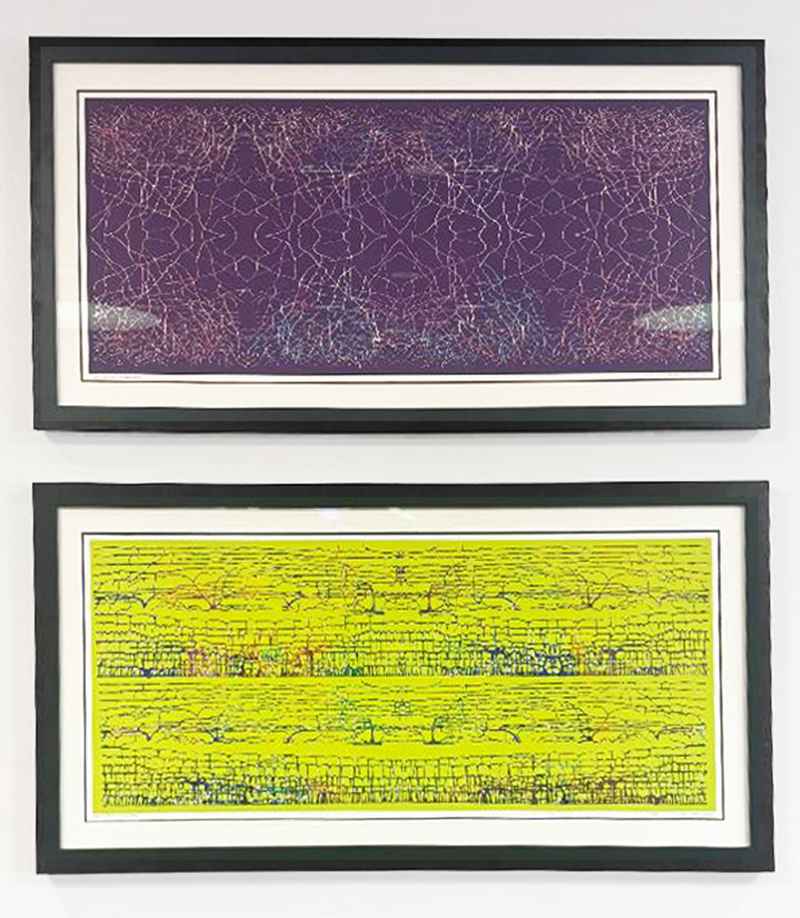 I have had well over 50 individual art exhibits and participated in over 100 group shows. In Chicago, my art is on permanent display at the Illinois Institute of Technology, University of Chicago, Blackstone Hotel, Rockefeller Memorial Chapel, Brookfield Zoo, and Beverly Arts Center. In Minneapolis, eight pieces, including large scale ones, are on permanent display at the American Academy of Neurology, which opened recently. My paintings are in many museum collections internationally including the Art Institute and the Museum of Contemporary Art, both in Chicago. A suite of my art books are displayed in a modern art museum near Marseilles, France. My installation piece, Mirror Neurons, graces the cover of the Oxford University Press book, Consciousness and the Social Brain. Most recently, the University of Chicago requested that I donate four of my light columns for permanent display. In thanks the University honored me by naming the three-story entrance way of the Institute on the Formation of Knowledge, where these pieces are displayed, after me.