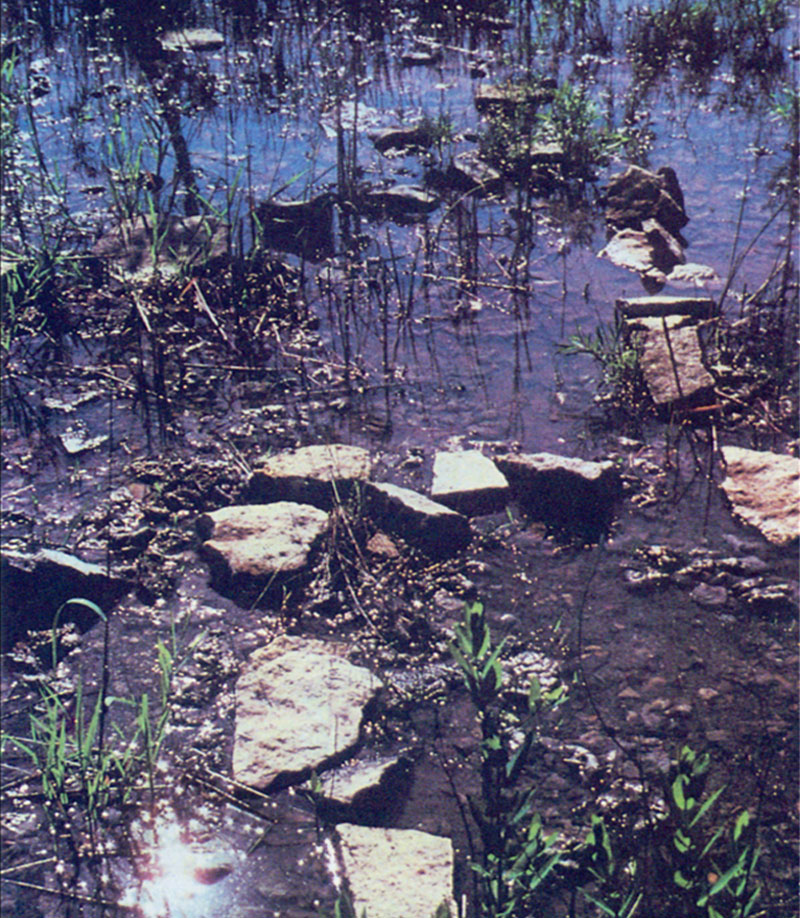 During my neurology residency at the Mayo Clinic, one Saturday morning I was jogging through Quarry Hill Park in Rochester, Minnesota. The quarried area was flooded from a storm the night before. I placed stones in a 50-foot-wide pattern analogous to ancient Lithuanian burial sites. A photograph of this outdoor installation serves as the basis for this symphonic artwork.